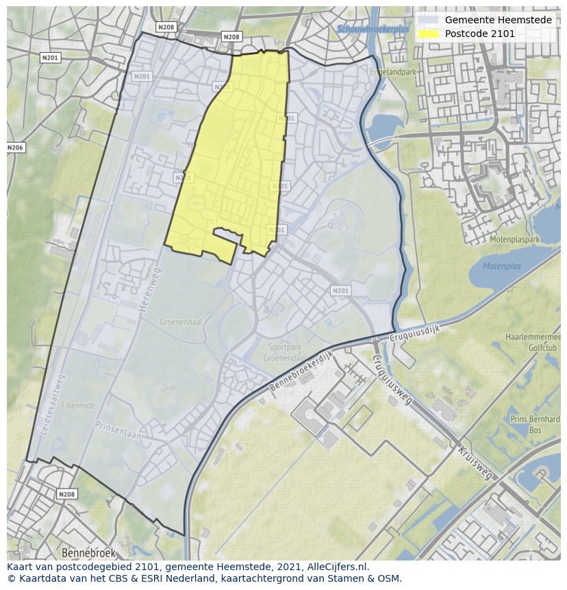 Huishoudens in Heemstede postcode 2101